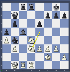 In anlaufender Zeitnotphase funktionierte jedoch für Jannis in dieser Stellung eine nette Taktik, die ihm zusammen mit dem Zeitvorsprung einen entscheidenden mentalen Vorteil brachte: