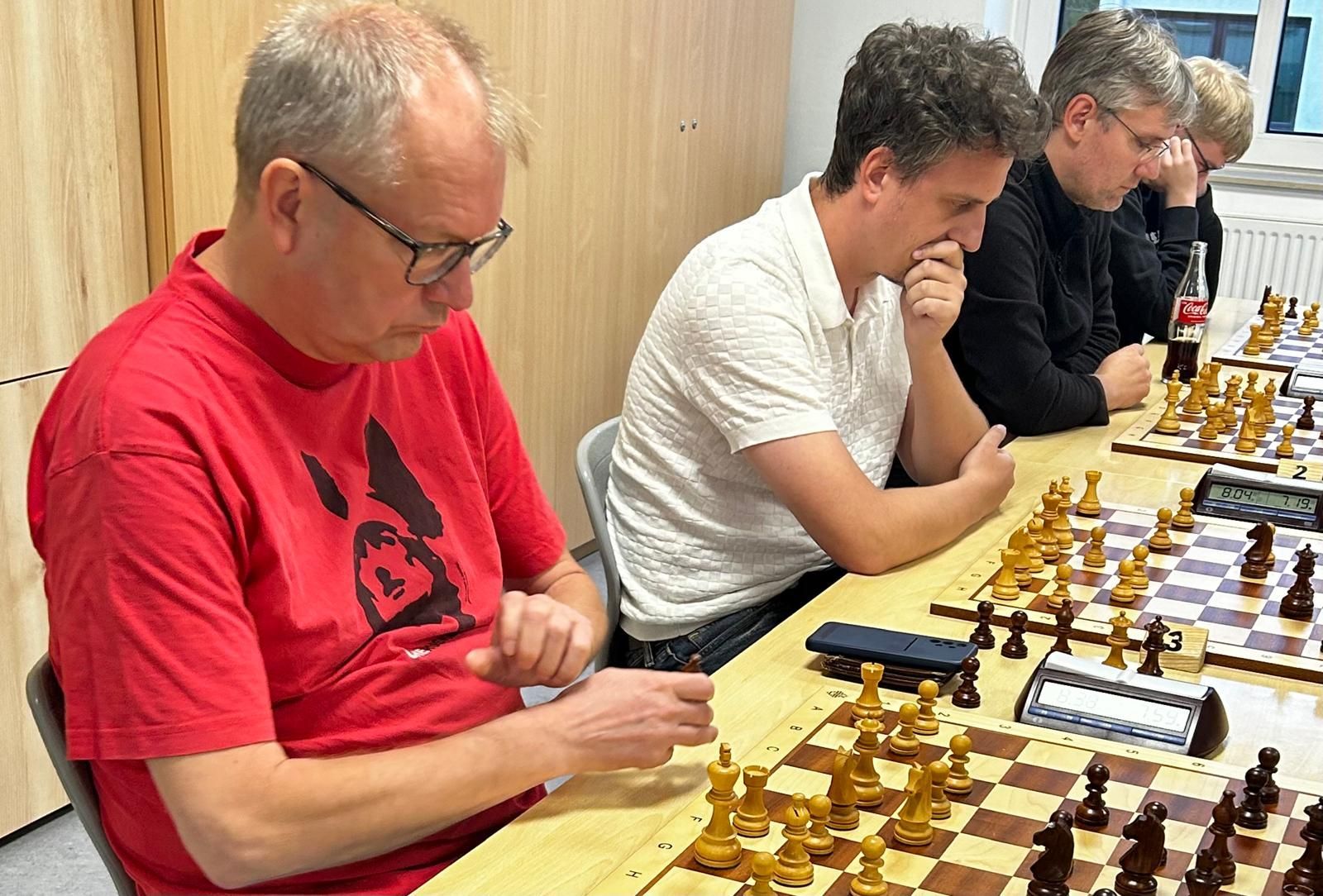 In der dritten Runde dann das erste Duell der Favoriten. Pascal Brunke spielte mit Weiß gegen Christian Brunke. Das Läuferendspiel war nicht zu gewinnen und endete mit 3-facher Stellungswiederholung. Remis. Boris Brosig nutze die Punkteteilung der beiden und setzte sich mit 3 aus 3 an die Spitze vom Feld.