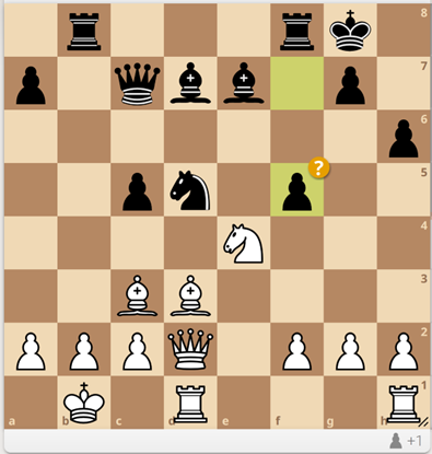In der Partie folgte: 21. fxe4, 22. Dxd5+ Kh7, 23. Dxd7 Dxd7, 24. Txd7 Lf6 25. Lxf6 Txf6 und das Endspiel ist hoffnungslos verloren. Nach ein paar weiteren Zügen gab Schwarz auf 2,5- 0,5 aus Bünder Sicht.