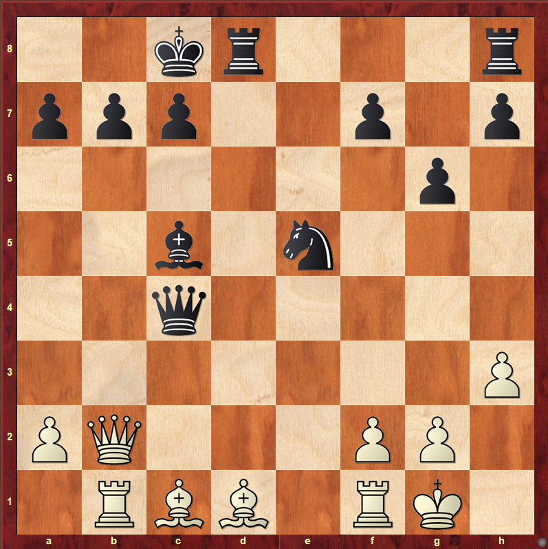 Mit einer sehenswerten Kombination kann er viel Material abtauschen und in ein gewonnenes Endspiel überleiten.