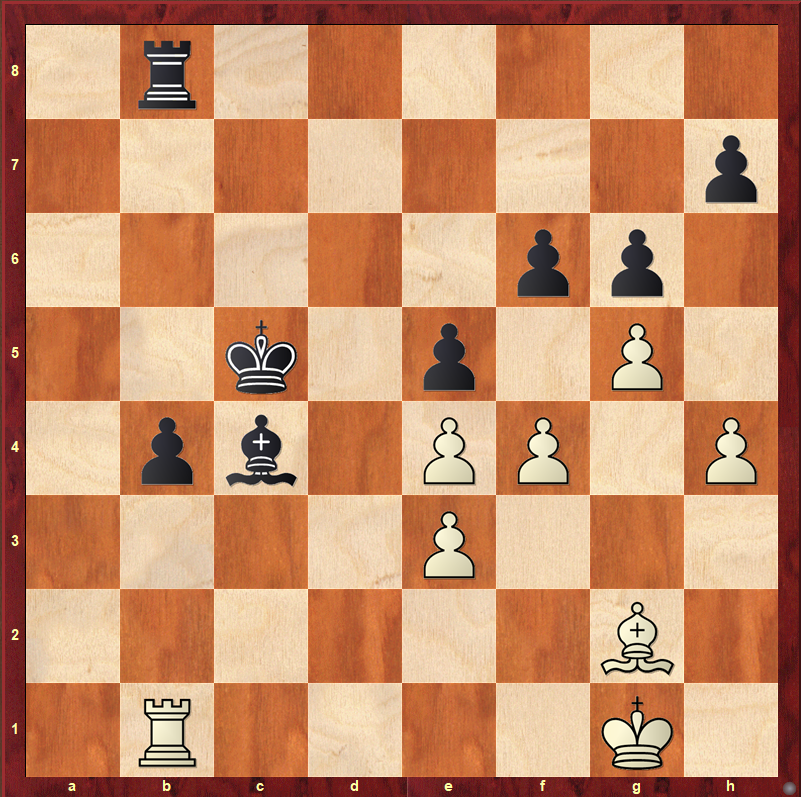 Die Drohung b2 und La2 bzw. b2 und den König nach c2 bringen konnte Weiß nicht mehr parieren und gab auf.