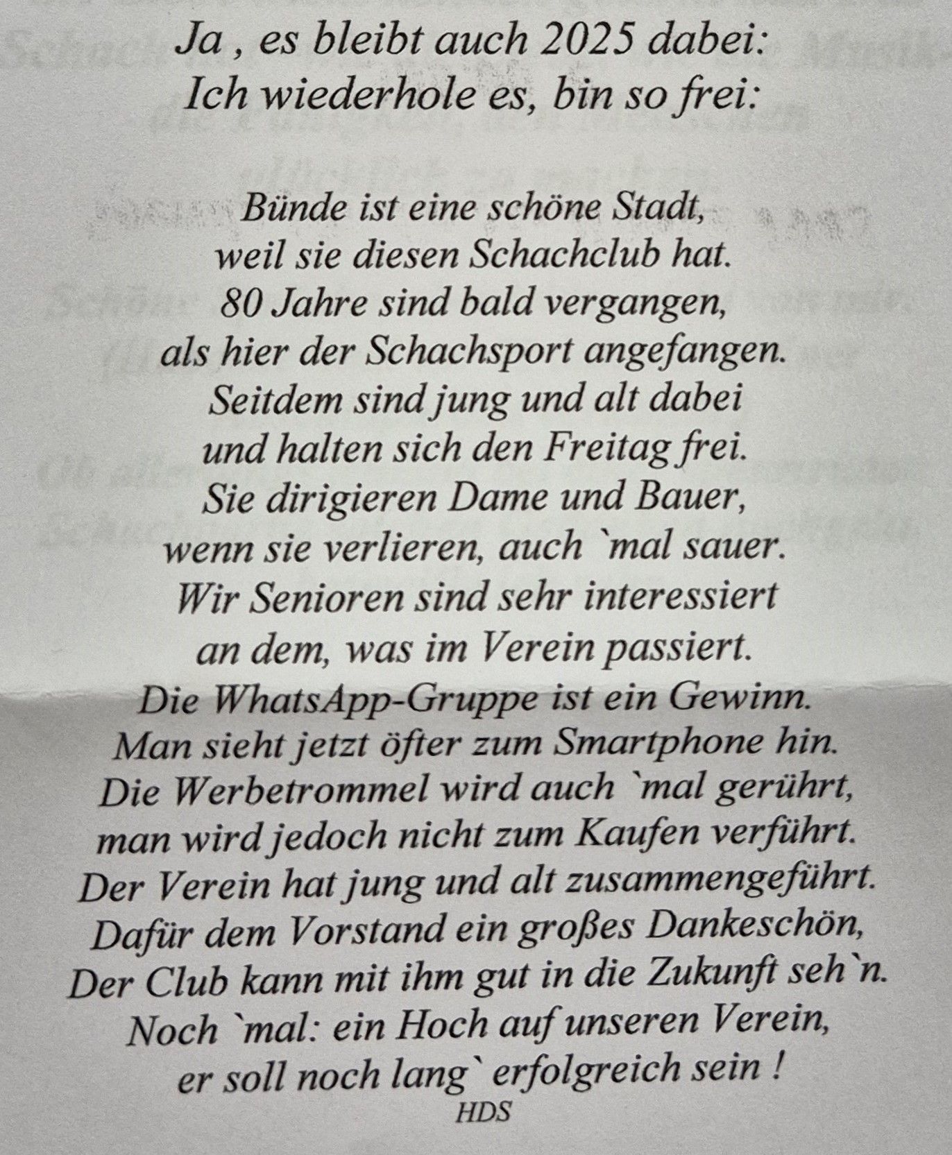 Vielen Dank an Hans-Dieter, der sein 75-jähriges Vereinsjubiläum zum Anlass genommen hat, dieses tolle Gedicht zu schreiben!